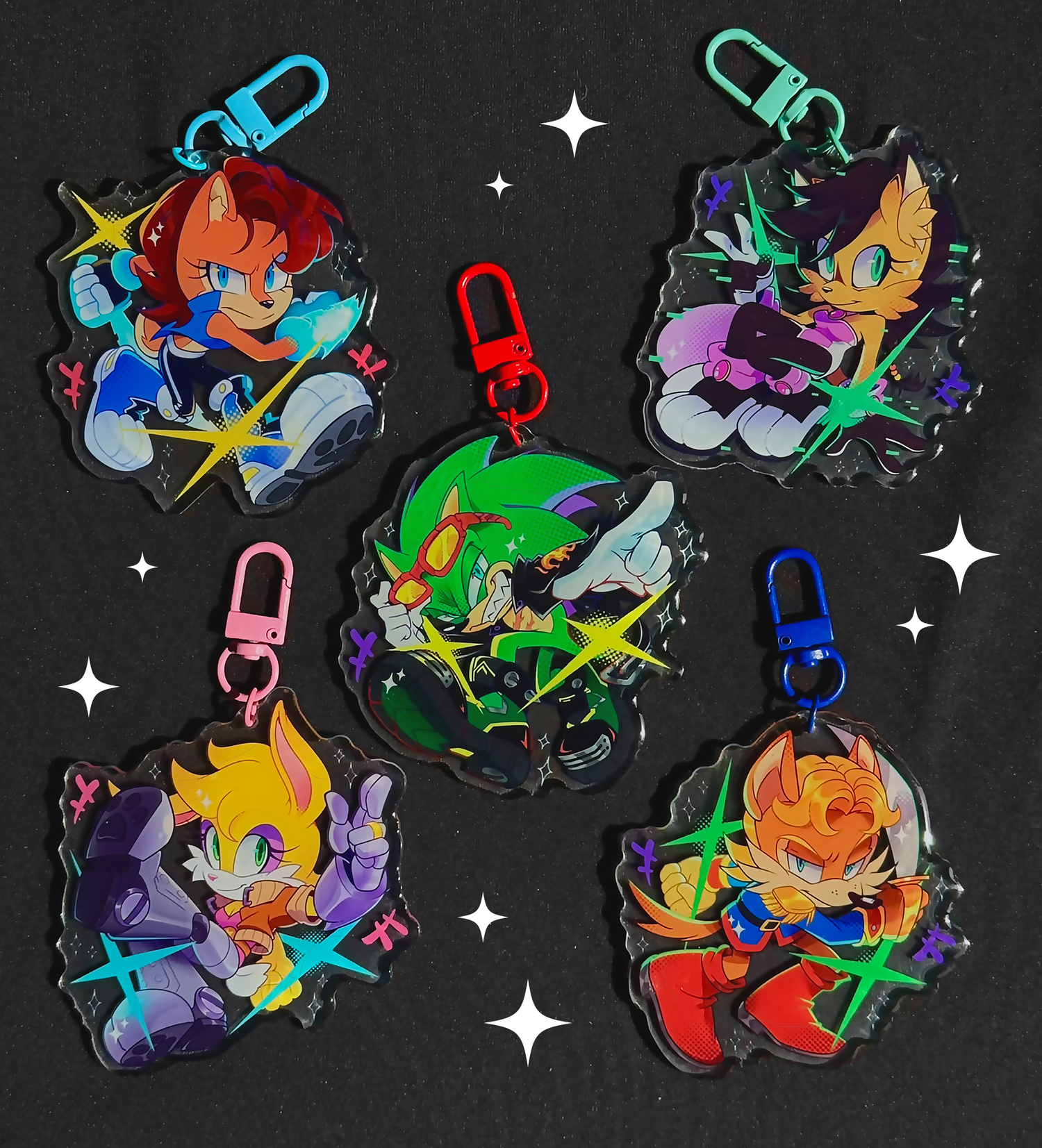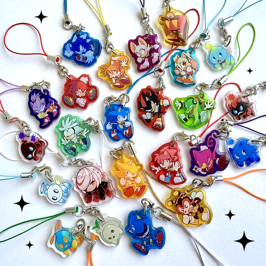 All of the charms and prints are absolutely beautiful! And i really love how they look! The holographic keychains glow and shine every little turn, and they look great and fantastic! I genuinely cant wait to hang them up and display all my items, because ive never been *this* excited. Thank you truly for making such amazing and well priced merch.